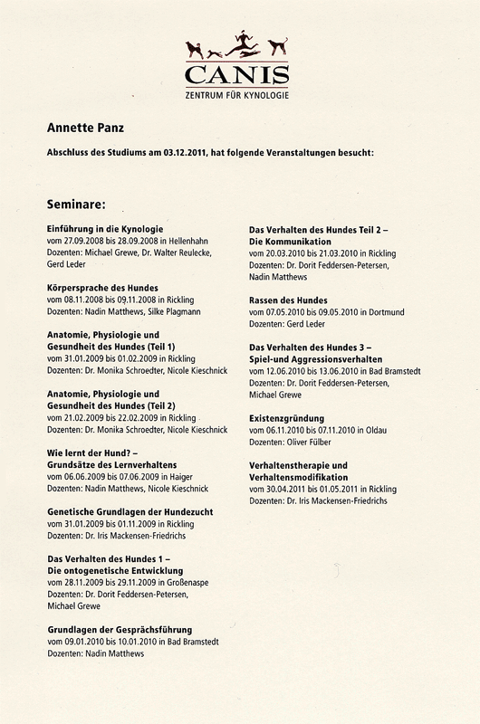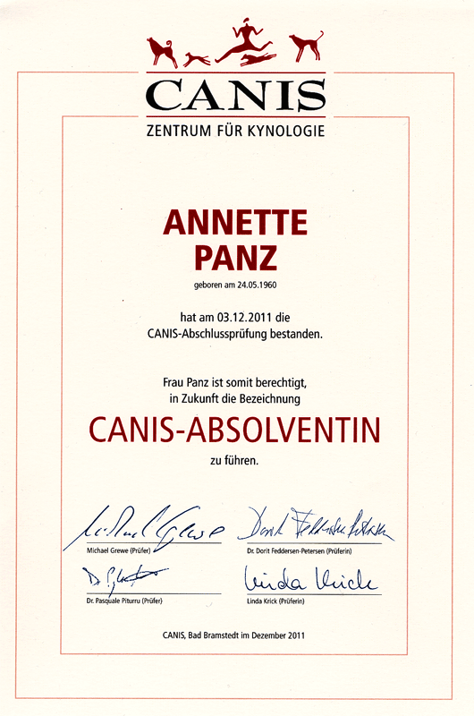 Canis Absolventin Zertifikat ansehen |