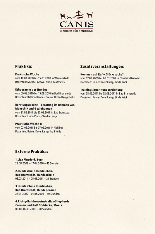 Dreijähriges Studium bei Canis: Zentrum für Kynologie |